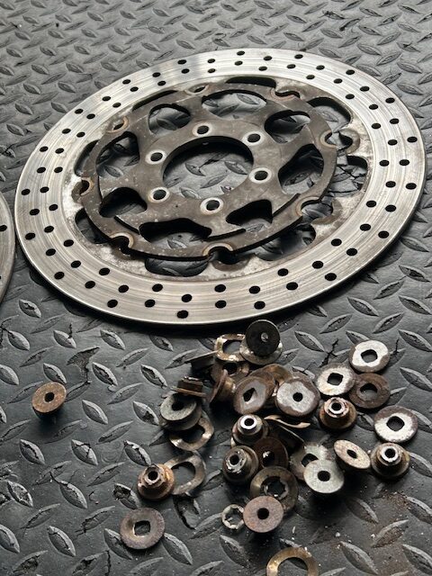 ディスク板のフローティングピンも腐食が酷く、ピンの交換、インナーをブラスト処理して装着