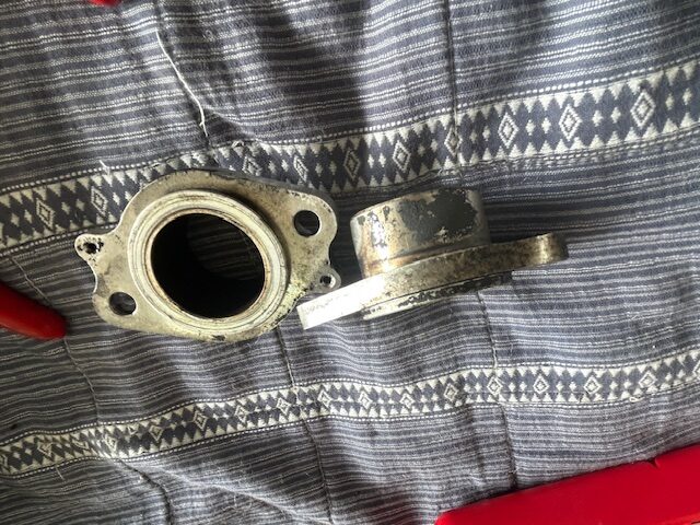 マフラーフランジも締め付けによる変形があり、旋盤にてあたり面を修正して使用