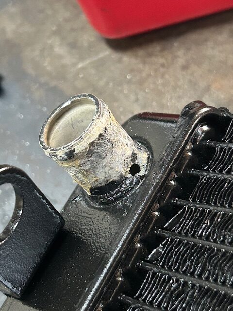 ラジエーターも腐食により、パイプに穴が開く状態 旋盤でパイプを作り直し、溶接して