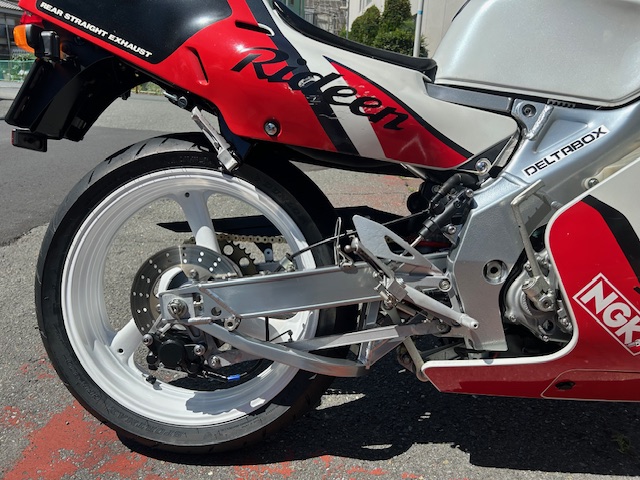 フレームとスイングアーム ホイルなどは、パウダーコート塗装で フォークアウターはセラコート塗装