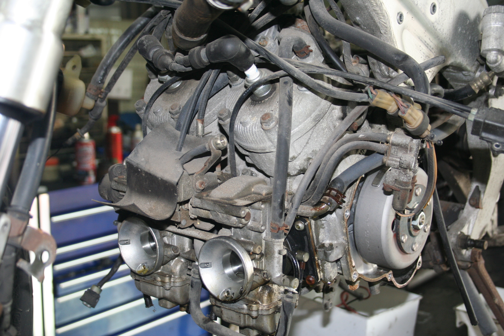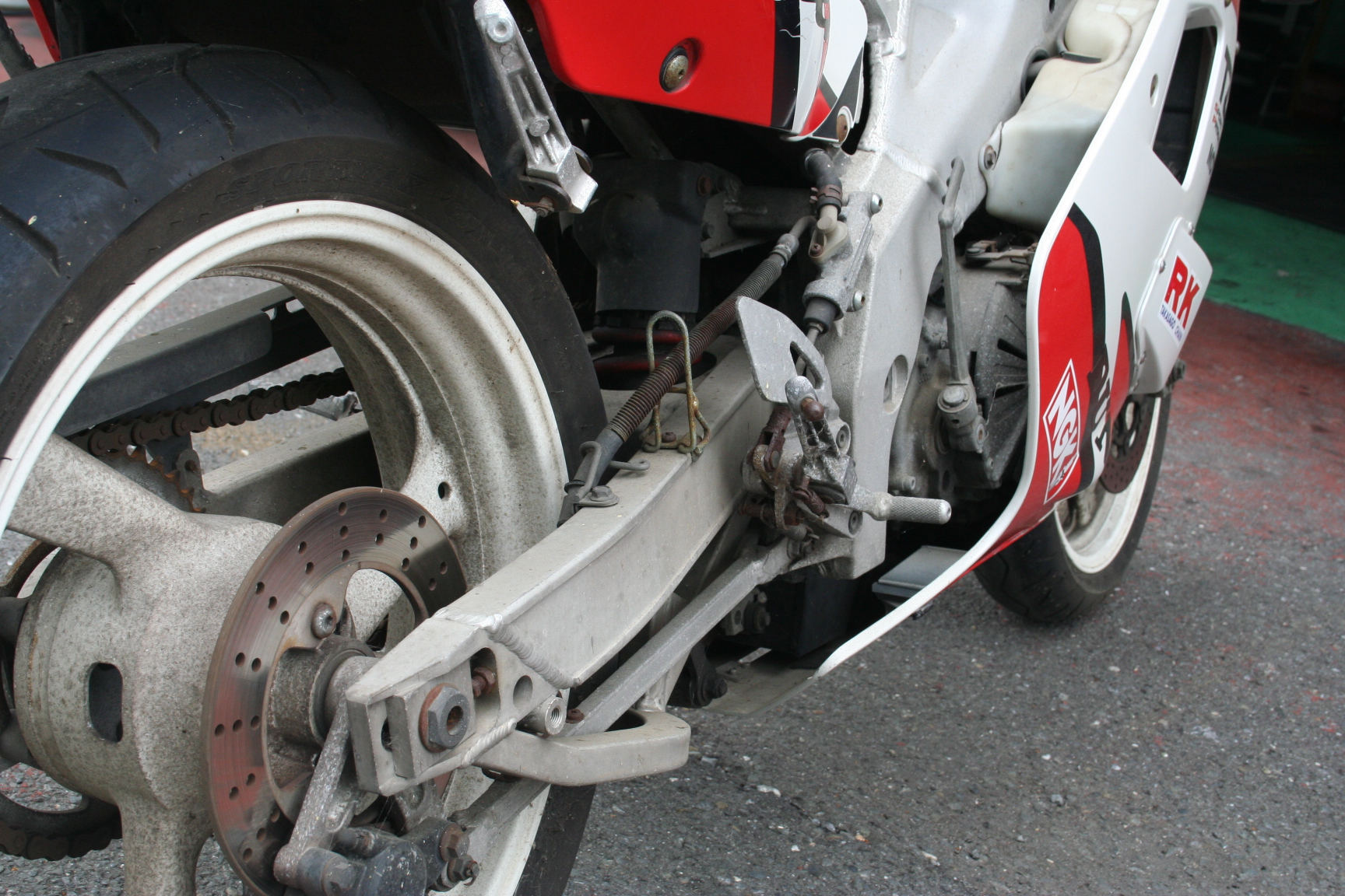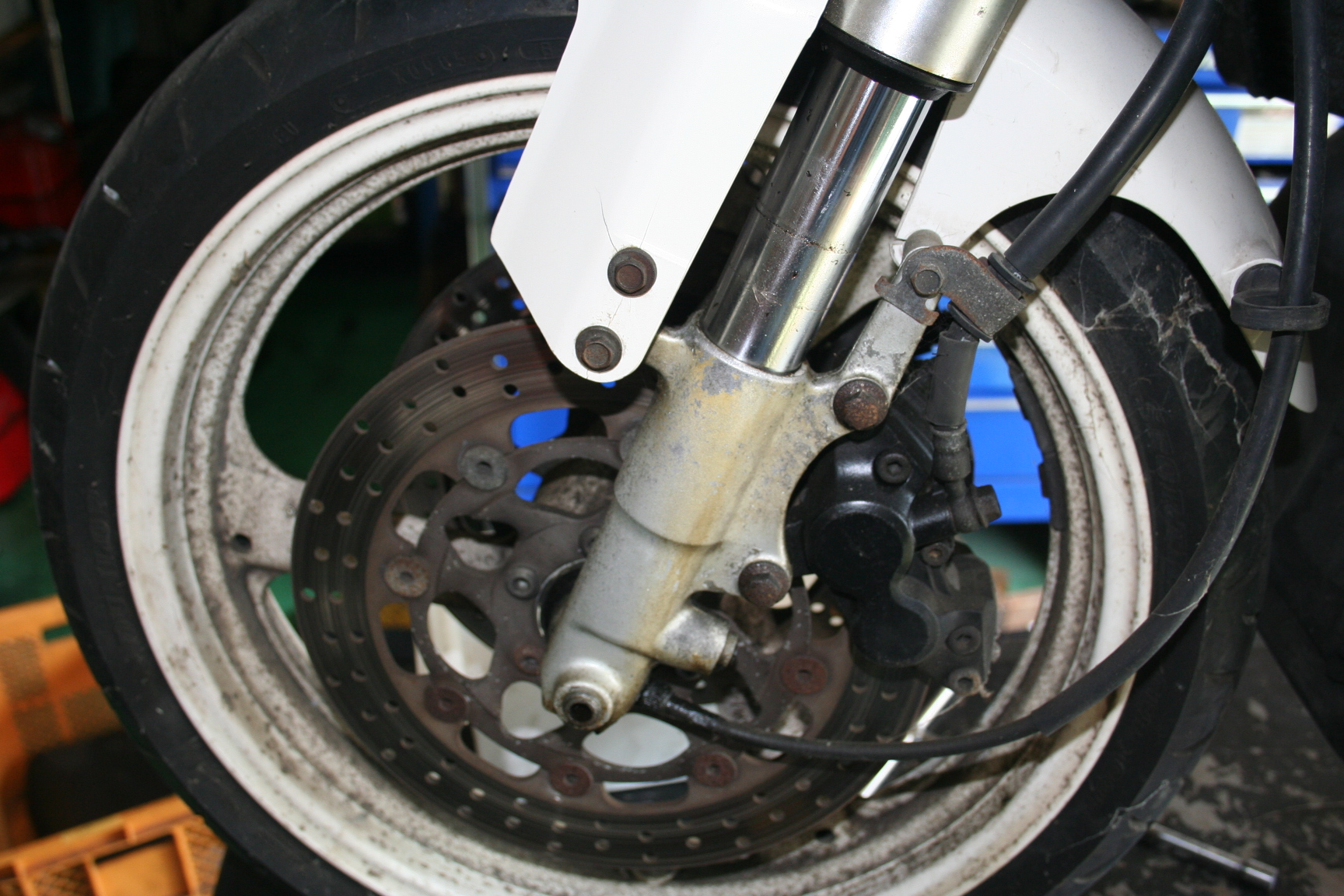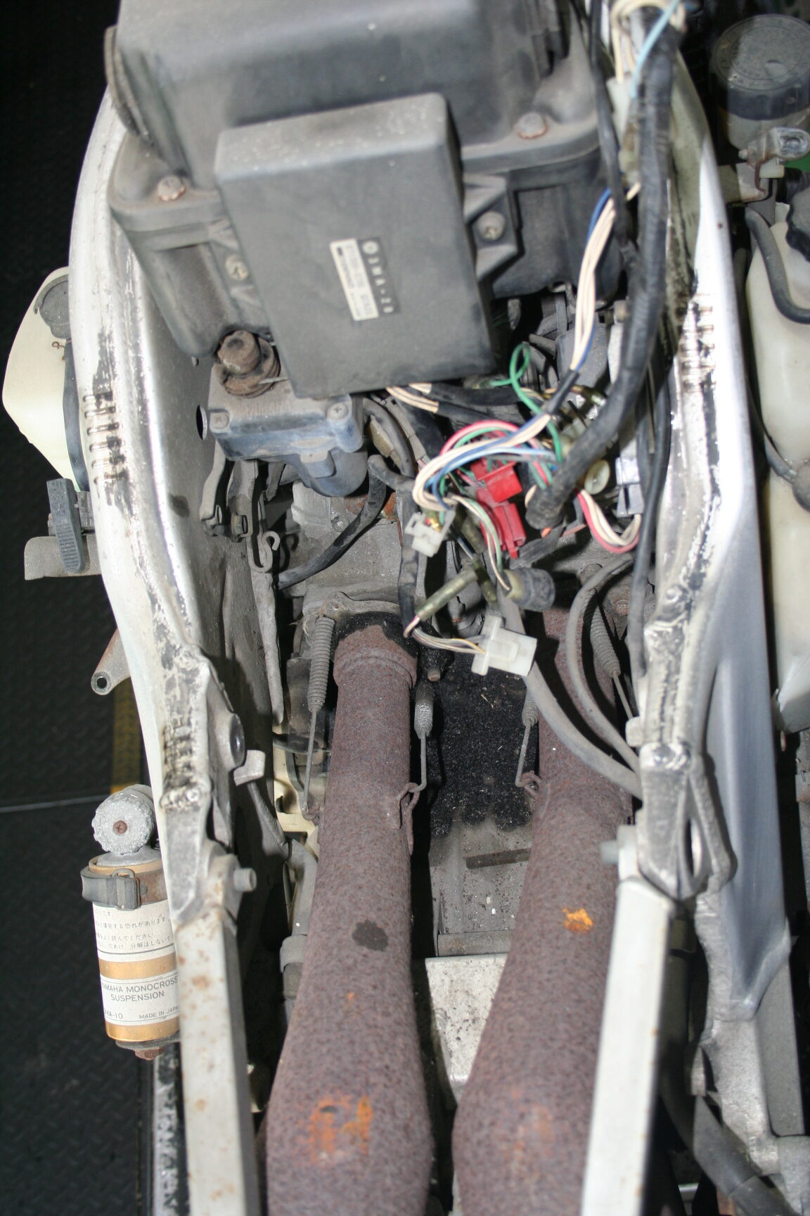 腐食がかなり進行しており、フレーム スイングアーム フォークなどアルミ部品の腐食が特に多く